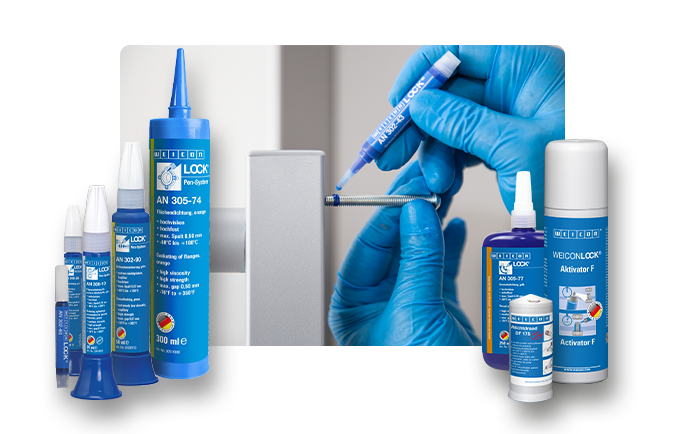 WEICONLOCK screw locks prevent screws and stud bolts from loosening on their own – reliable for repairs, assembly, and maintenance. Thanks to a wide range of types from low to high strength and from thin to high viscosity, you can quickly find the right type with the adhesive finder and the tables in the catalog.