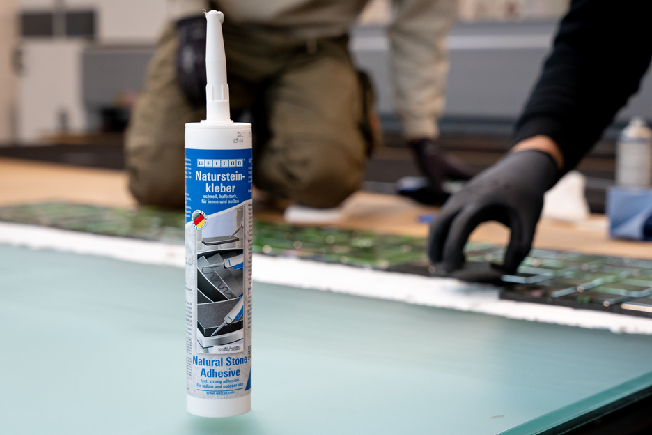 WEICON Natural Stone Adhesive is a strong adhesive for fixing natural stone, stone and ceramics. Thanks to its very high initial adhesion and rapid build-up of adhesive strength, bonding is even possible on vertical surfaces such as walls. The stone adhesive is suitable for many indoor and outdoor applications. It is frost-proof, has a high temperature resistance of -40°C to +90°C as well as high weather and UV resistance. The Natural Stone Adhesive hardens quickly and has a very high final strength. After curing, the adhesive can be sanded and remains elastic to compensate for movements. The stone adhesive is silicone-free, isocyanate-free, halogen-free and solvent-free. It can be used in a wide variety of applications, e.g. for bonding window sills, tiles, skirting boards, decorative mouldings or stair treads. WEICON Natural Stone Adhesive adheres very well to a wide variety of materials, such as wood, wood-based materials, plastics, metals, glass and mineral substrates. It is available in grey and white.