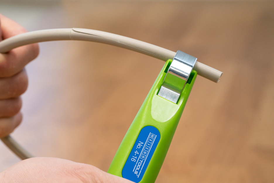 Sustainable stripping tool I Infinitely variable and easy to operate adjusting wheel Self-turning I rotating inner blade I Precise, quick and safe stripping I Working range 4 - 16 mm Ø