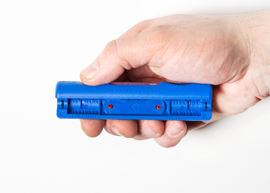 Working range 4.8 - 7.5 mm Ø Adjusting the cutting depth not required Also suitable for flexible cables Length scale (0 - 17 mm) integrated in the housing Two-level stripping of all common coaxial cables