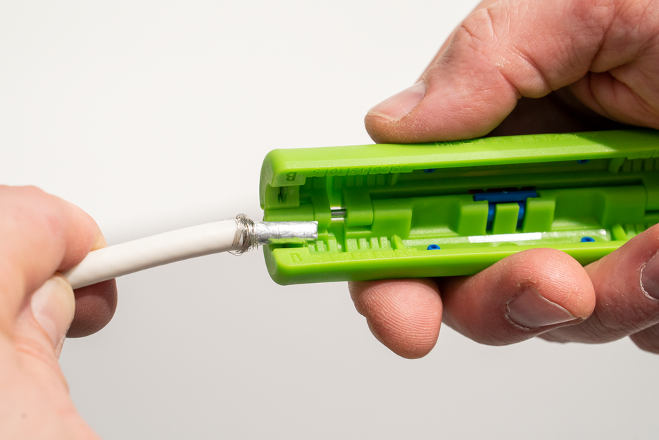 Working range 4.8 - 7.5 mm Ø Adjusting the cutting depth not required Also suitable for flexible cables Length scale (0 - 17 mm) integrated in the housing Two-level stripping of all common coaxial cables
