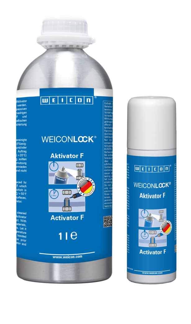 Le prétraitement par l'activateur F permet de réduire fortement le temps de prise. L'activateur est également recommandé pour toutes les surfaces passives ou quand la température ambiante est basse (à partir de +10 °C/+50 °F et au-dessous) ou lorsque le jeu est important. Dans le cas de surfaces non métalliques, WEICONLOCK ne durcit que sous l'influence de l'activateur.