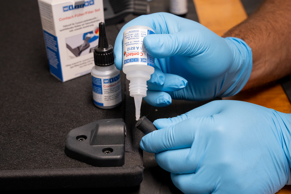 WEICON Contact VA 8312 convient pour coller différents matériaux en caoutchouc, comme le caoutchouc plein ou le caoutchouc mousse, les matières plastiques et les élastomères EPDM. En combinaison avec WEICON CA-Primaire, VA 8312 convient aussi aux polyoléfines (PE-polyéthylène, PP-Polypropylène). VA 8312 convient également en combinaison avec WEICON Contact Filler pour le collage instantané et le remplissage de fissures, fentes, trous et inégalités.
