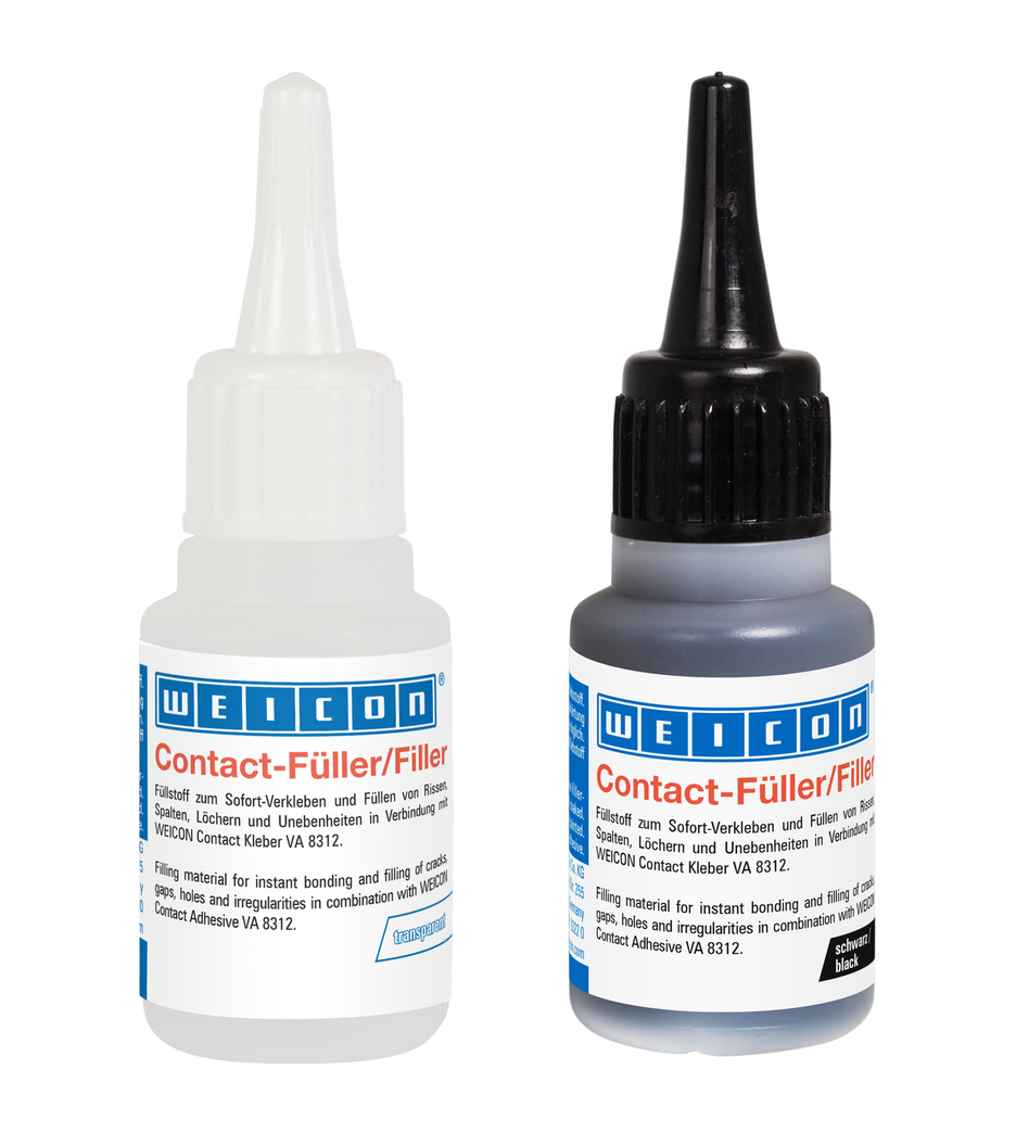 Agent de charge à base d'oxyde de silicium spécialement développée pour les colles cyanoacrylates WEICON, pour le remplissage de grands interstices de collage de plus de 0,1 mm ainsi que pour le remplissage de fissures, de fentes, de trous et d'irrégularités. Ainsi, en combinaison avec la colle instantanée cyanoacrylate Contact, le Contact Filler convient non seulement au collage, mais aussi au renforcement, au moulage, au modelage, à la fixation, au remplissage ainsi qu'à l'égalisation et au nivellement.