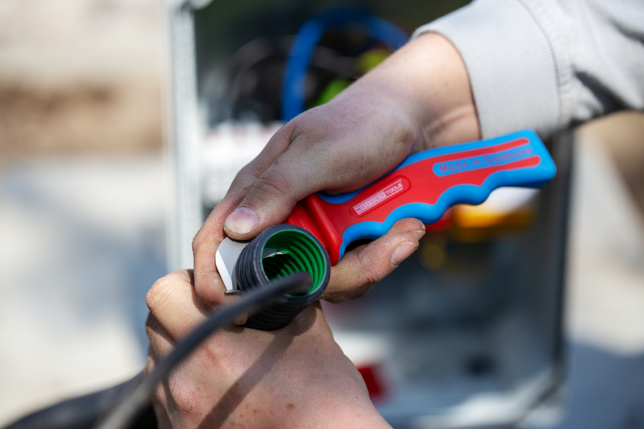 Incision rapide de câbles à isolation multiple Protection des conducteurs par une pointe de lame en forme de cosse Bonne transmission de force grâce à la forme optimisée du manche