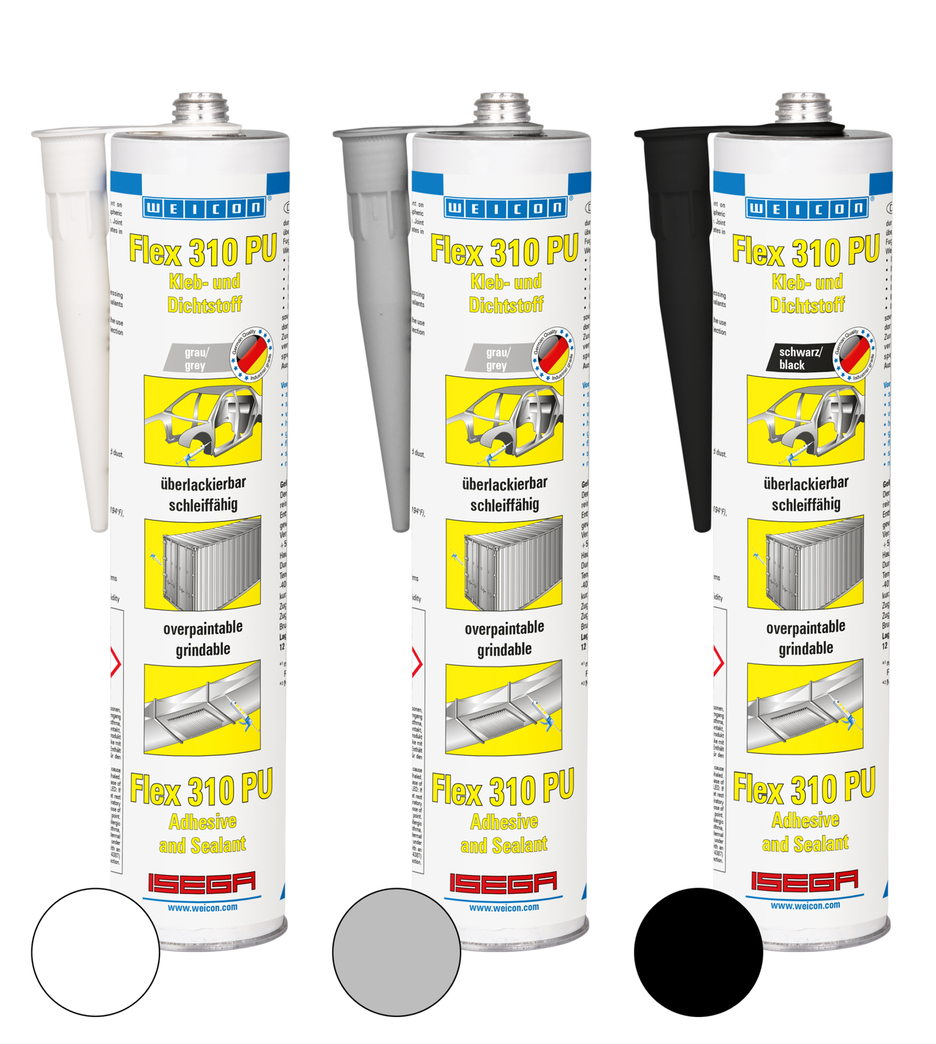 Flex 310 PU est durablement élastique, possède une forte adhérence, peut être peint, résiste aux intempéries, aux UV, à l‘eau douce et à l‘eau salée. Il est exempt de silicones. Ce produit est un scellant adhésif élastique à base de polyuréthane (PUR) permettant de réaliser des collages et des scellements sur de nombreux matériaux, comme les métaux, les matières plastiques, la céramique, le bois, le verre et la pierre. Il s‘utilise en chaudronnerie, dans la construction d‘appareils, en carrosserie, dans la construction de véhicules et de containers, la ventilation et la climatisation, la technique des matières plastiques, l‘industrie énergétique et électrique et partout où des silicones ou des produits siliconés ne conviennent pas.