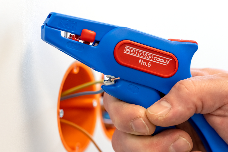Automatische Abisolierzange von 0,2 - 6,0 mm² Seitenschneider für Einzeldraht bis 2 mm ø Verstellbarer Längenanschlag für definierte Absetzmaße bei z.B. WAGO-Klemmen Kabelmesser mit Arbeitsbereich 4 - 28 mm Einstellbares Innenmesser für Rund- und Längsschnitt Ideal für den Bau von Schaltschränken