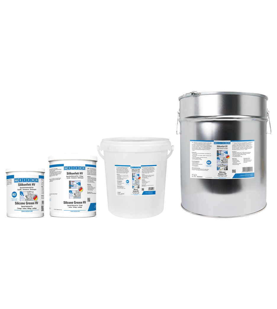 La Graisse Silicone WEICON HV est particulièrement adhérente et a une très bonne compatibilité avec les matières plastiques. En raison de son enregistrement NSF H1, elle convient comme lubrifiant pour les vannes, la robinetterie et les joints dans les domaines sensibles. Il est conforme aux directives KTW de l'Office fédéral de l'environnement pour le contact avec l'eau potable. Elle peut être utilisée dans la technique alimentaire, dans l'industrie des boissons, dans le domaine sanitaire et du chauffage, dans l'industrie pharmaceutique et dans la technique d'étanchéité. La Graisse Silicone WEICON HV a été testée par le BAM et évaluée du point de vue de la sécurité - voir la fiche technique M 034-1 "Liste des matériaux non métalliques pour l'utilisation dans l'oxygène" (DGUV Information 213-075) de la BG RCI. La graisse est particulièrement bien tolérée par les matériaux, inodore et sans goût et résiste à des températures de -50 °C à +200 °C. La Graisse Silicone WEICON HV convient pour la lubrification de pièces en plastique, de pièces et de joints en caoutchouc, pour la lubrification de vannes, de robinets et de joints, pour les appareils et les installations.