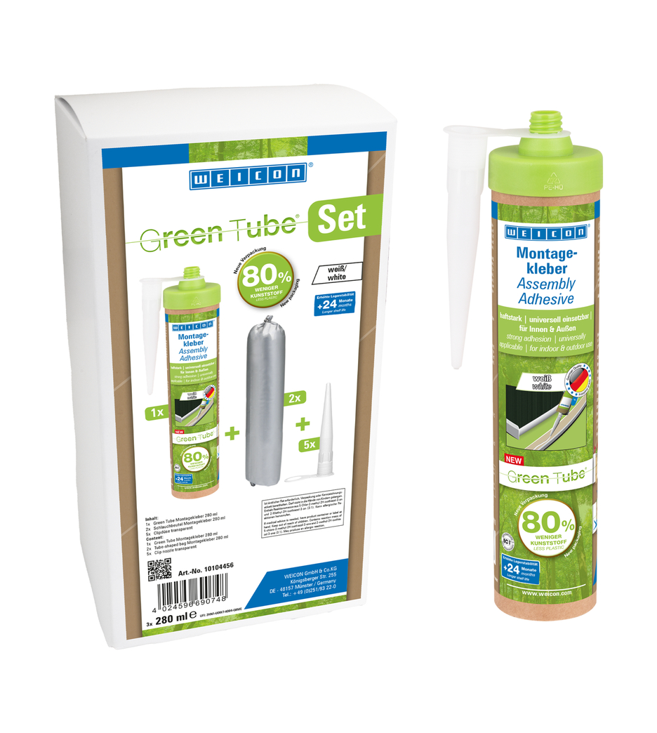 La Colle de Montage WEICON est une colle acrylique à dispersion à forte adhérence pour les travaux de montage, de réparation et de retouche. La colle dispose d'une adhérence initiale et d'une résistance finale élevées et durcit rapidement. Après séchage, la colle de montage peut être poncée et recouverte d'un enduit et peut être peinte avec des peintures et des vernis courants. La colle résiste à des températures comprises entre -20 °C et +80 °C et convient aussi bien aux applications intérieures qu'extérieures. La colle blanche flexible est à faible émission et exempte de solvants. La Colle de Montage est universelle et peut être utilisée pour les applications les plus diverses. Elle est par exemple idéale pour le collage en surface de matériaux en bois, (comme les plinthes, les moulures, les panneaux ou les panneaux de particules), le PVC, le polystyrène expansé, la mousse rigide PU (par exemple les panneaux isolants et les gaines de câbles), les matériaux minéraux (par exemple le carrelage) et les métaux sur des supports absorbants, comme le crépi, le béton, le fibrociment, le placoplâtre et le bois non traité. Emballage durable - même efficacité ! Green Tube, l'emballage durable : l'embout et le couvercle sont composés à 100 % de plastique recyclé, le corps de la cartouche à 100 % de carton. Moins d'émissions de CO2 et de consommation de plastique que les cartouches traditionnelles. Sans faire de compromis sur les performances !