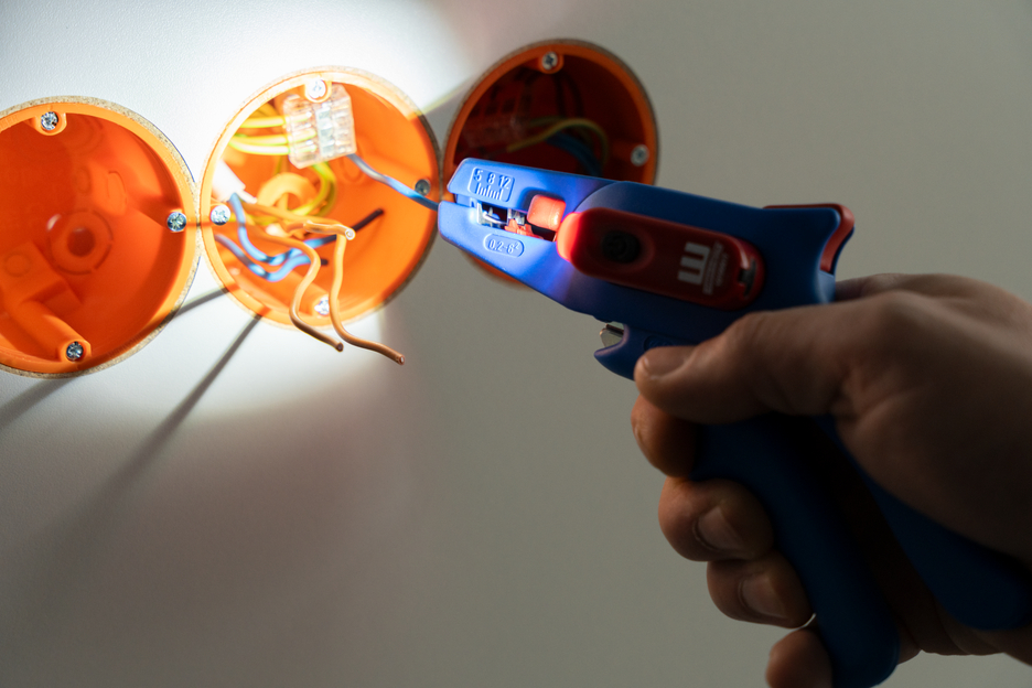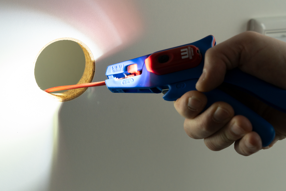 Electricians should always work with the power turned off when handling electrical installations, wires or devices. During work, e.g. in a construction site, there is often insufficient lighting or illumination. This new work light offers a perfect solution. The work light is very easy to attach to the stripping tool. To attach it, simply remove the printed plastic plate on one side of the stripper and press the light with its two mounting points into the designated holes. This ensures that the work light always remains in the correct position and cannot fall or slip. The lamp is switched on by pressing the switch. Press several times to select the brightness level (three levels with 50, 127 or 250 lumens). To switch off the lamp, press and hold the on/off switch. The LED Work Light has a length of 48 mm and a weight of 15 g. The LED light has IP65 certification and is both dustproof and splash-resistant. The Work Light has a 180 mAh lithium battery and can be used for approx. 2 hours on a medium setting after a charging time of 40 minutes. The service life of the battery charge varies depending on the selected light intensity. The WEICON TOOLS LED Work Light is available in the colours red and black.