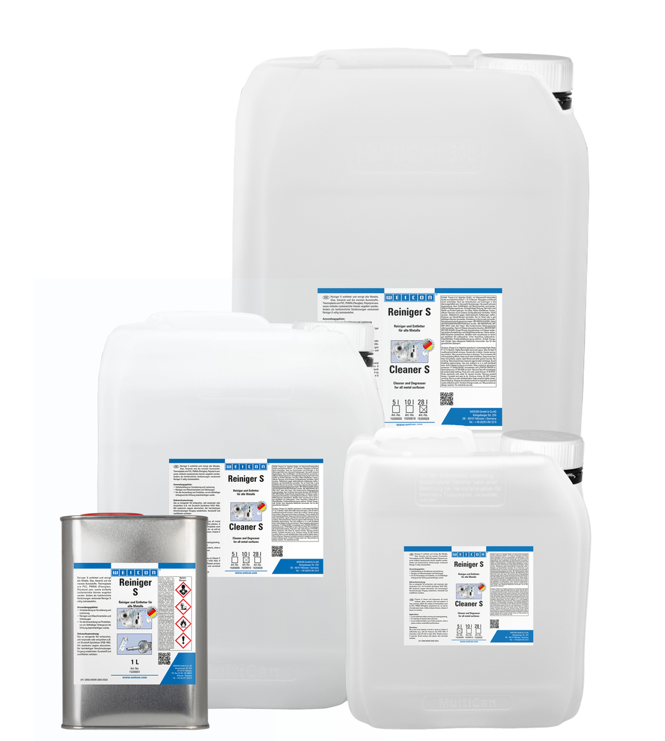 WEICON Nettoyant S nettoie, dégraisse et s'évapore entièrement sans laisser de traces. Nettoyant S peut être appliqué sur tous les métaux, le verre, la céramique et la plupart des matières plastiques. Il sert à nettoyer et à dégraisser les supports avant d'appliquer l'apprêt ou la peinture, à nettoyer des pièces de machines ou avant d'utiliser d'autres produits WEICON lorsqu'un support gras nuirait à l'action de ceux-ci.