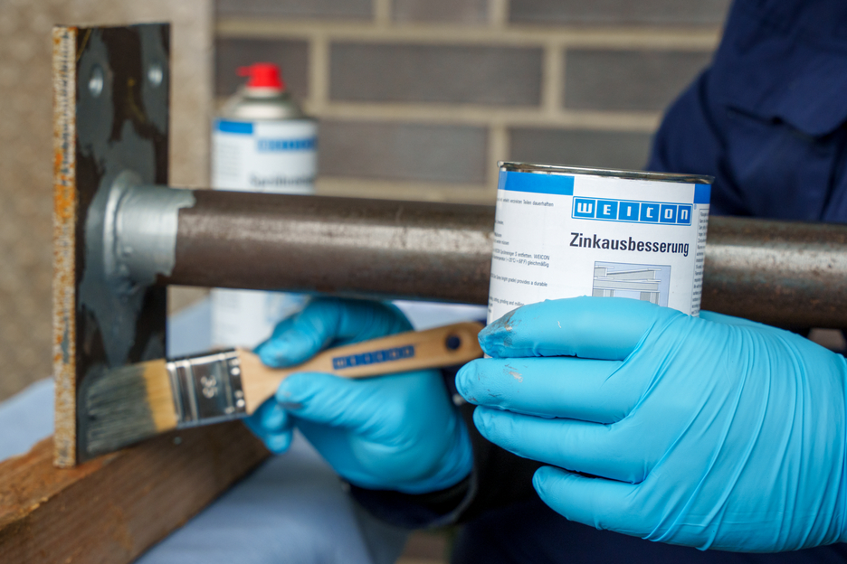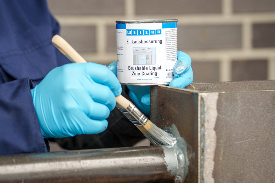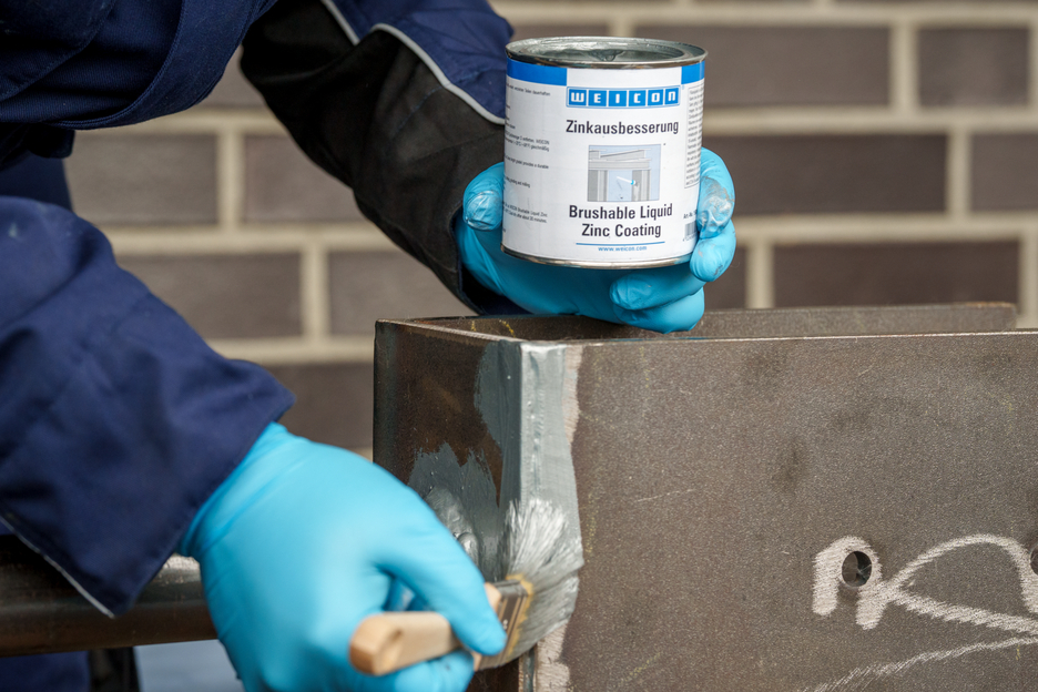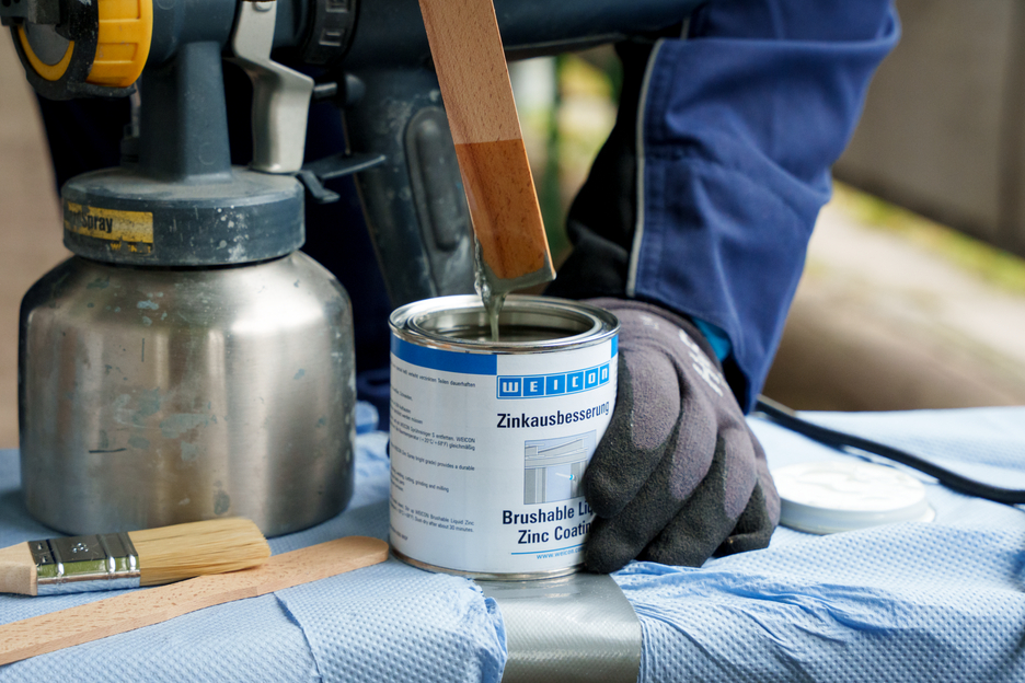 WEICON Peinture Zinc pour Retouches est une protection anticorrosion active pour toutes les surfaces métalliques, dans une teinte se rapprochant de la galvanisation à chaud. Dans la WEICON Peinture Zinc pour Retouches, les paillettes de pigments s‘alignent sur le support en plusieurs couches décalées parallèlement à la surface comme des tuiles. Même quand l'épaisseur de la couche est faible une haute protection contre la corrosion est obtenue. Ainsi les exigences de DIN EN ISO 1461 sont respectées. De ce fait, la Peinture Zinc pour Retouches protège la surface plus longtemps contre les pénétrations d’humidité. La combinaison avec l’effet électrochimique simultané donne une protection anticorrosion optimale.