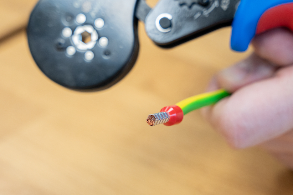 HEX-CRIMP 16 mm² has been specially developed for the process-safe crimping of wire end ferrules. Six synchronously driven dies produce a hexagonal crimp that facilitates the insertion of round terminals. The hexagonal crimp profile with serrated dies made of multi-hardened carbon steel ensures permanent electrical connections. Self-adjustment to the required wire end ferrule enables fast work with different cross-sections. The crimping tool has a ratchet mechanism with a blocking device to ensure a consistently high crimping quality and results that can be precisely repeated. The crimping tool will only open when the crimping process is complete. An emergency release has also been integrated into the handle, which opens the crimping tool in the event of misuse. Thanks to the accurate eccentric setting, the crimping force can be precisely adjusted. As a result, the tool delivers a consistently high crimping quality. The HEX-CRIMP 16 mm² tool can be used to process wire end ferrules in the working range of 0.5-16 mm² (AWG 20-5). The 2-component handles of the crimping tool ensure non-slip and ergonomically friendly handling with maximum force transmission. The tried and tested “ice-crack design” was used, which ensures a comfortable feel. The integrated eyelets on the handles can be used to attach a safety catch.