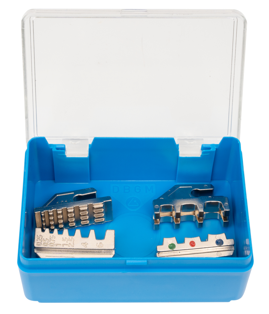 MULTI-CRIMP was developed for the process-safe crimping of various electrical connectors. The crimping tool has a ratchet mechanism with a blocking device to ensure a consistently high crimping quality and results that can be precisely repeated. The mechanism only opens the tool when the crimping process is complete. An emergency release has also been integrated into the handle, which opens the crimping tool in the event of misuse. The accurate eccentric setting ensures a high crimping quality thanks to the precisely adjustable crimping force. With the Multi Change System, the module pairs of the crimping tool can be exchanged quickly and easily, as needed. The change system, which requires no additional tools, ensures that the modules can be installed and removed fast. The standard version of the crimping tool is equipped with three pairs of modules made of high-quality steel. One pair for MC4 connectors with cable cross-sections of 2.5 mm², 4 mm² and 6 mm² (14-10 AWG). Another pair of modules for insulated wire end ferrules from 0.25-6 mm² (AWG 24-10) and a third module for insulated cable lugs from 0.25-2.5 mm² (AWG 24-14). The three pairs of modules are stored safely and protected from dust in a small plastic box. The 2-component handles of the MULTI-CRIMP tool ensure non-slip and ergonomically friendly handling with maximum force transmission. The tried and tested “ice-crack design” was used, which ensures a comfortable feel. The integrated eyelets on the handles can be used to attach a safety catch.