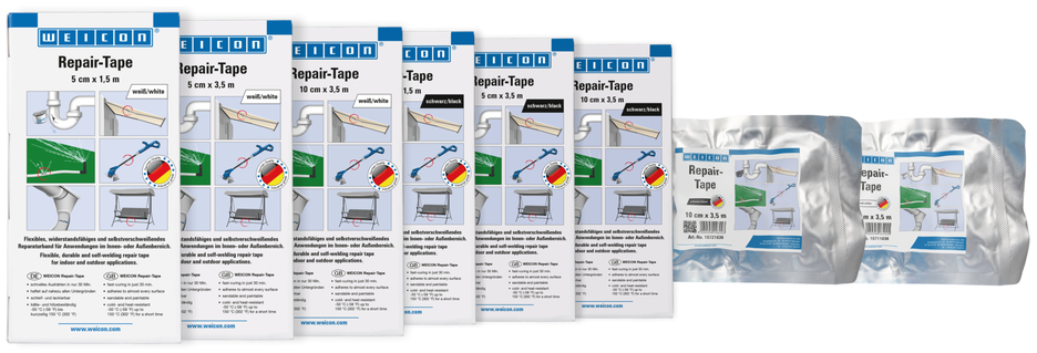 Ruban de réparation flexible, résistant et autosoudant en plastique renforcé de fibre de verre pour des réparations d'urgence rapides à l'intérieur ou à l'extérieur. Le ruban est imprégné d’une résine spéciale qui est activée par contact avec de l’eau. Il se caractérise par une application très facile et rapide et dispose de propriétés d'adhérence très fortes sur presque toutes les surfaces. Après seulement 30 minutes, la bande est complètement durcie et peut être chargée. Après durcissement, la bande peut être poncée et repeinte. Il dispose d'une grande résistance aux produits chimiques et aux températures de -50 °C /(-58 °F) à +150 °C (302 °F) pendant une courte période. La bande peut être traitée sans outils supplémentaires et est utilisée pour des réparations fiables et durables dans l'industrie, le commerce, le ménage, le camping et le secteur du bricolage.