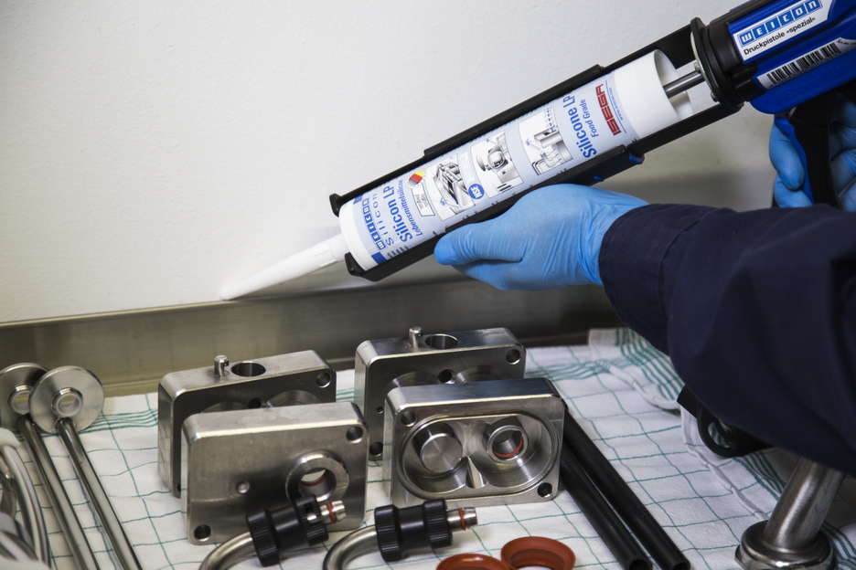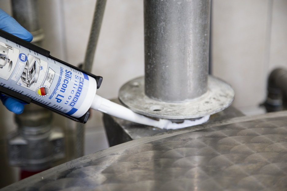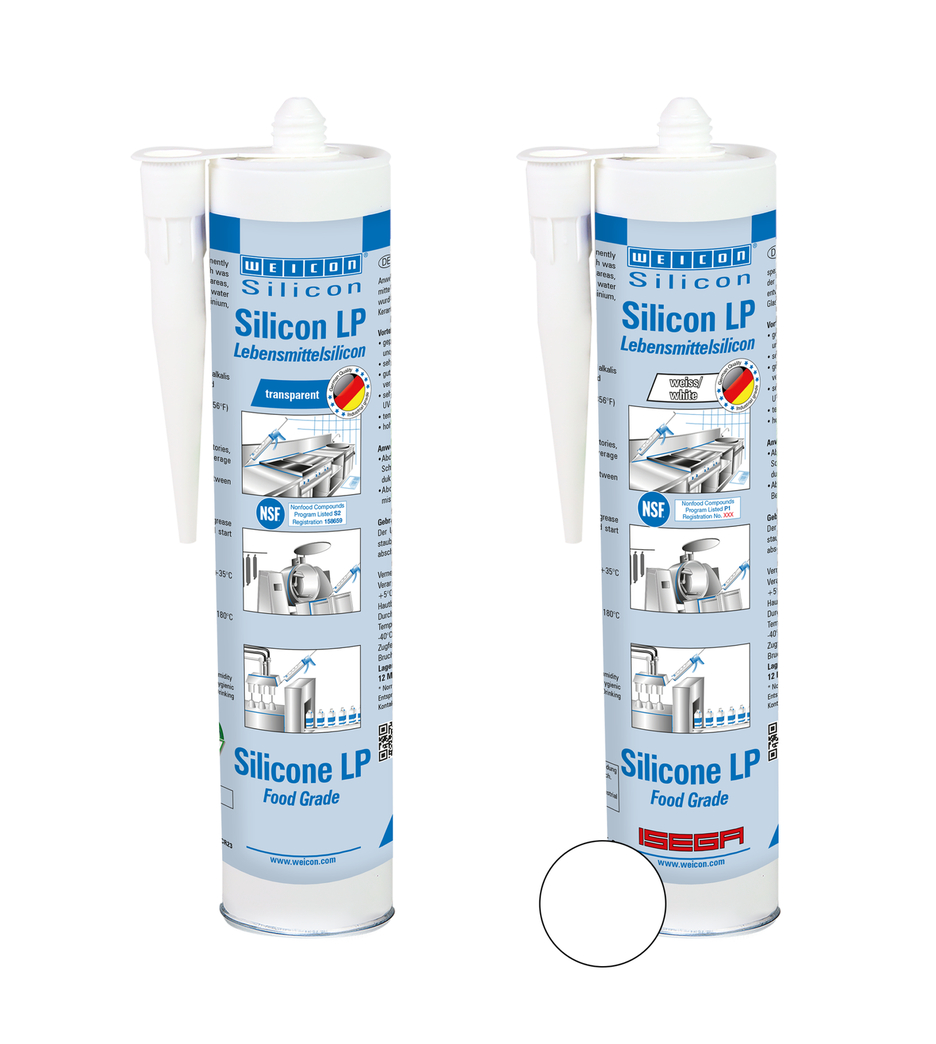 WEICON Silicon LP est un mastic adhésif et scellant à réticulation acétique et à élasticité permanente. Il résiste aux produits chimiques, au vieillissement, aux intempéries, au rayonnement UV et aux températures jusqu'à +180 °C (+356 °F). Il adhère très bien à l'acier, à l'aluminium, au verre, aux matières plastiques et à de nombreux autres matériaux. Silicon LP a été spécialement développé pour les applications délicates. Il est utilisé pour l’étanchéité dans les secteurs de l'alimentation et de l'eau potable, par exemple dans les laiteries, les abattoirs, l'industrie des boissons et de la production alimentaire ou dans les cuisines industrielles. Validé par l'Institut d'Hygiène de la Ruhr selon la directive KTW de l'Agence fédérale allemande de l'environnement.