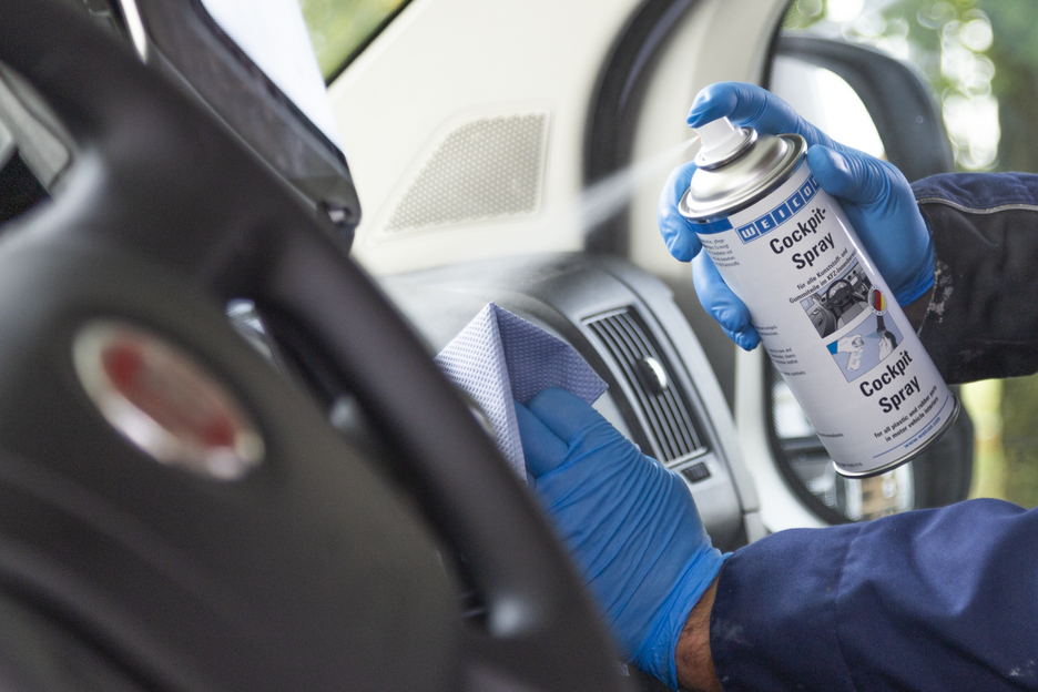 Le Spray Cockpit WEICON est un agent d’entretien hydrofuge pour toutes les pièces en matière plastique et en caoutchouc à l'intérieur des véhicules à moteur. Le film protecteur invisible et durable empêche les salissures et donne un éclat soyeux facile d’entretien et antipoussières. Le Spray Cockpit rend son éclat aux matières plastique ternies et altérées par les intempéries. Le caoutchouc ne devient pas fragile et reste souple et élastique. Le Spray Cockpit WEICON élimine les grincements et les craquements, entretient les tableaux de bord, les revêtements intérieurs, toutes les pièces en matière plastique et en caoutchouc, cuir, bois et chrome ainsi que les pavillons de véhicules revêtus de cuir artificiel, évite le gel des joints de portes, fenêtres et coffres et s'utilise comme lubrifiant pour ceintures de sécurité, glissières de sièges, toits ouvrants, coulisses de fenêtres, serrures de portes et partout où des graisses pourraient causer des salissures.