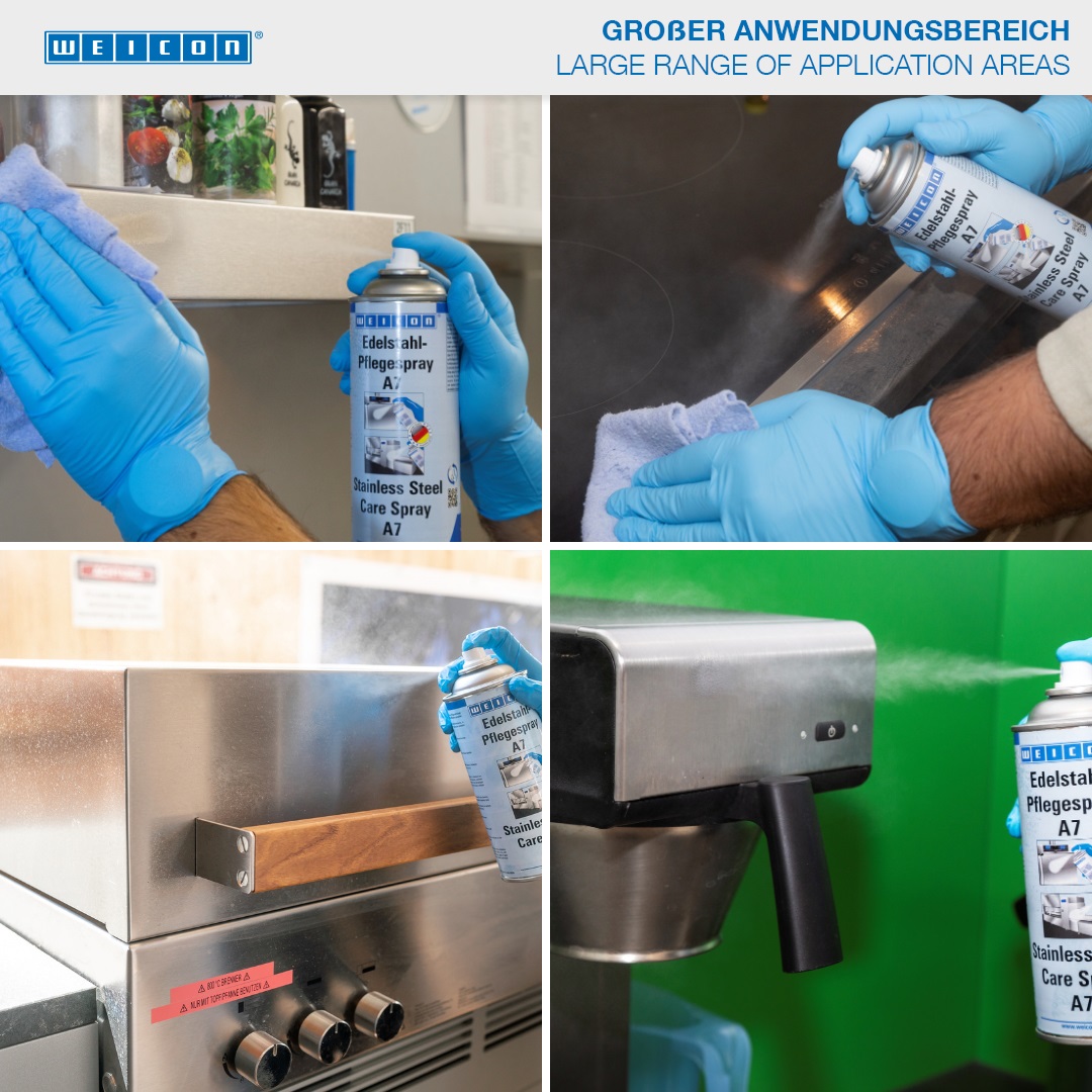 Le Spray Pro Inox pour acier inoxydable a été spécialement conçu pour le nettoyage, l'entretien et la protection des surfaces en acier inoxydable brossées, mates et polies dans les zones sensibles. Le spray spécial peut être utilisé dans l'industrie alimentaire et des boissons, dans les grandes cuisines ainsi que dans l'industrie pharmaceutique et médicale. Le spray a une homologation NSF (A7) et peut être utilisé dans les zones de traitement des aliments. Il élimine les films lubrifiants et les traces de doigts, réduit l'oxydation et la corrosion, nettoie sans laisser de traces même les grandes surfaces, laisse un film protecteur de longue durée et fait perler l'eau. Il a un effet antistatique et adhère également aux surfaces verticales.