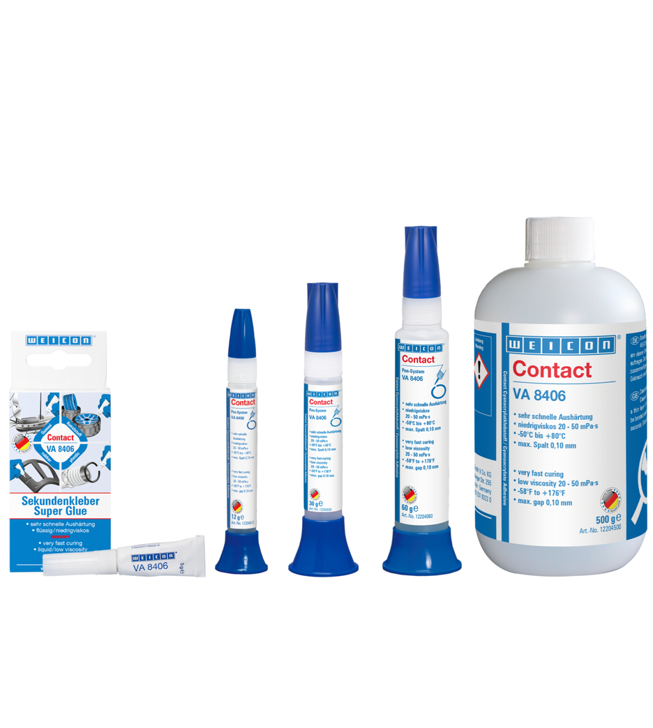 WEICON Contact VA 8406 convient pour fixer rapidement et coller différents matériaux en caoutchouc, comme le caoutchouc plein ou le caoutchouc mousse, les matières plastiques et les élastomères EPDM. VA 8406 convient aussi pour les polyoléfines en combinaison avec WEICON CA-Primaire (PE-polyéthylène, PP-polypropylène) ainsi que le PTFE et les silicones.