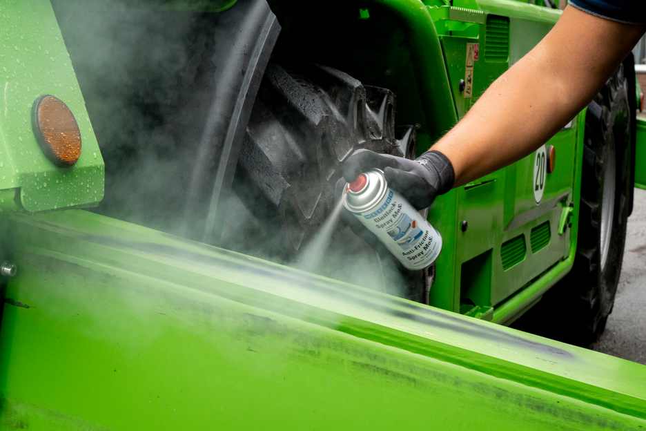 WEICON Vernis Antifriction à Gicler MoS2 est un lubrifiant sec sans graisse à haute résistance à la pression et à la température de -200°C (-392°F) à +450°C (+842°F) brièvement à 500°C (932°F). Antisalissures, antipoussières et hydrofuge, le revêtement résiste aux huiles, graisses et agents chimiques et adhère aux surfaces métalliques, en matière plastique et en bois. La forte teneur en MoS2 assure une lubrification propre, réduit le frottement, sert de graissage d‘urgence et atténue les bruits de fonctionnement. Le Vernis Antifriction à Gicler MoS2 abrège et améliore les conditions de rodage de paliers lisses, d‘engrènements et d’autres couples de pièces coulissantes, en particulier en cas de forte charge de pression et de faible vitesse de glissement. WEICON Vernis Antifriction à Gicler MoS2 s‘utilise sur les glissières et les rails de roulement ainsi que sur les guidages, convoyeurs à bande, rouleaux et toboggans, comme revêtements de découpoirs, sur des produits de la technique de chargement, en lieu d‘agents séparateurs aux silicones et partout où ni l‘huile, ni la graisse ne sont autorisées ou souhaitables comme lubrifiants. Le vernis de glissement MoS2 résiste aux rayons X et aux lasers.