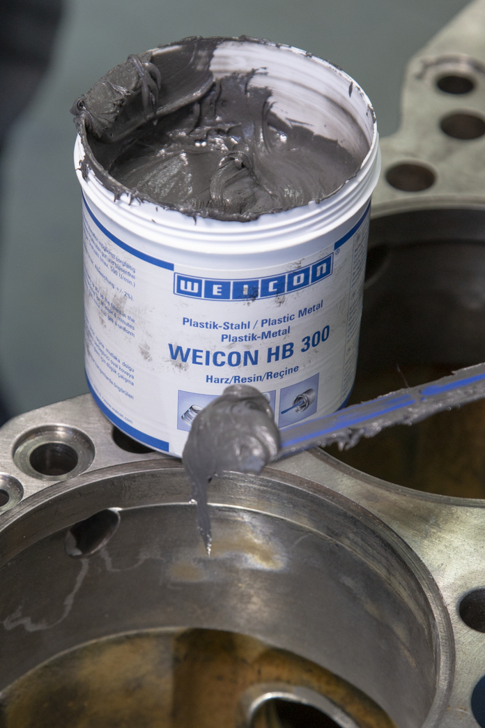 WEICON HB 300 est pâteux, à charge d'acier, résiste aux hautes températures jusqu'à +200 °C (392 °F) (brièvement jusqu'à +280 °C/536 °F) et s'applique dans un rapport de mélange de 1:1. Ce système à base de résines époxy s'applique également sur des surfaces verticales et s'utilise pour réparer et coller des pièces en fonte et en métal, pour remplir des retassures, réparer des dommages à des récipients, des carrosseries et des éléments de machines et pour rendre étanches des pompes et des tuyaux. Le produit s'utilise dans la construction de machines, d'installations et d'appareils et dans beaucoup d'autres domaines industriels.