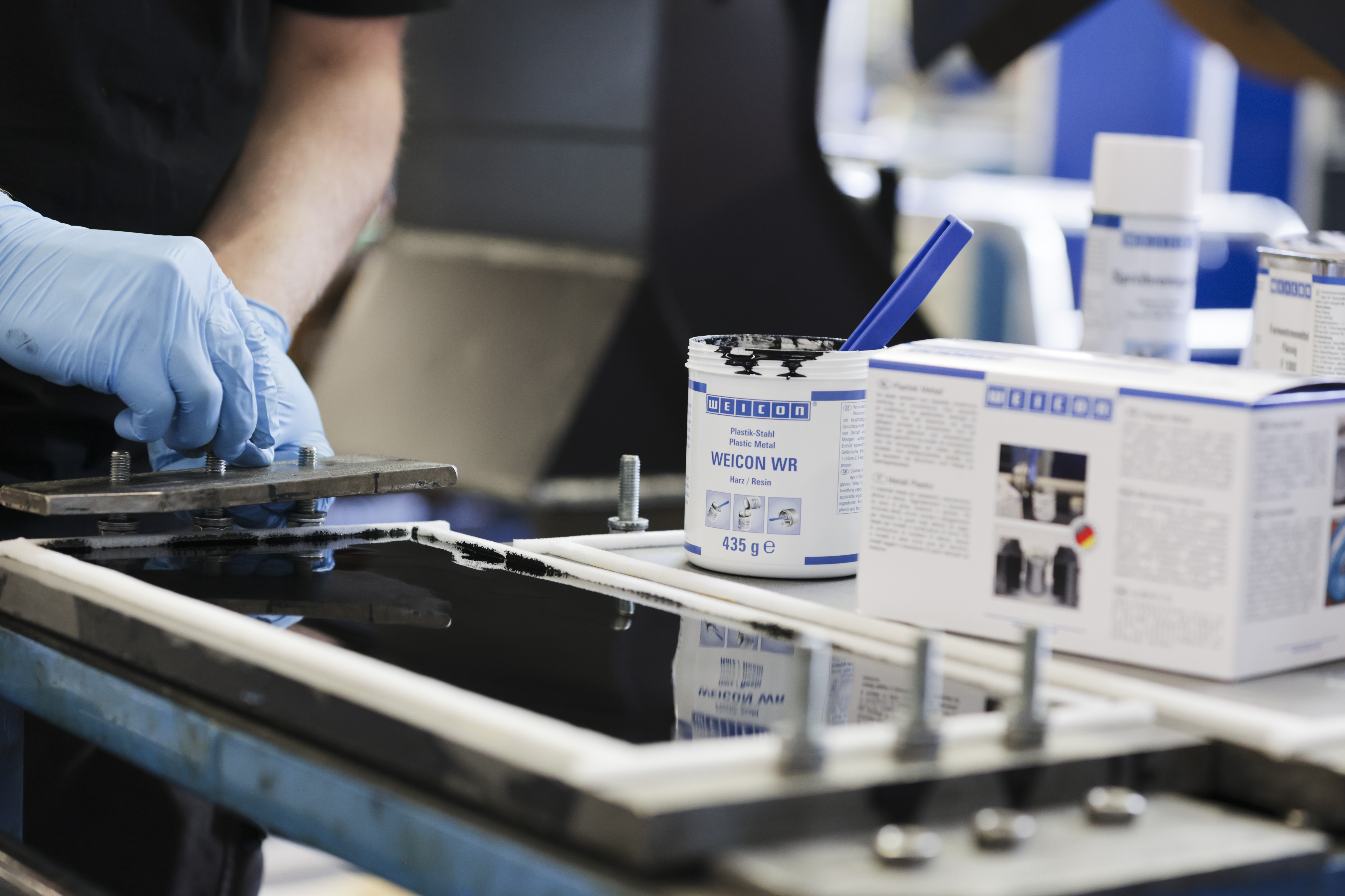 WEICON WR convient aux domaines où des pièces métalliques sont soumises à une forte usure par frottement. Pour réparer et couler autour d'arbres, sceller des paliers, des outils de coupe et de découpage, fabriquer des modèles pour la fonderie et la fraiseuse à copier ainsi que des moules d'emboutissage, couler des socles de machines et comme couche inférieure résistante à l'usure avant le revêtement final avec WEICON Céramique BL être utilisés, par. Il s'utilise dans la construction dans la construction d'outils, la construction de modèles et de moules ainsi que dans beaucoup d'autres domaines industriels.
