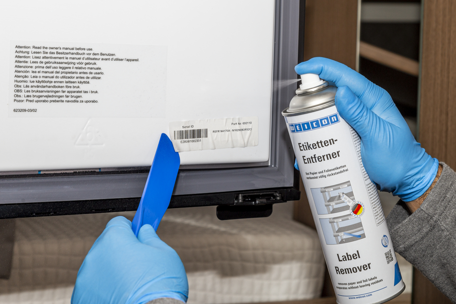 WEICON Label Remover quickly and easily removes paper labels and residues of acrylate and caoutchouc-based pressure-sensitive adhesives. WEICON Label Remover is suitable for many surfaces such as glass, metal, wood, foil and plastic. WEICON Label Remover easily and safely removes adhesive labels, price tags (e.g. incorrect labels), address and product stickers, identification labels, and label residues. It also removes adhesive residues from foil labels such as vignettes on car windshields.