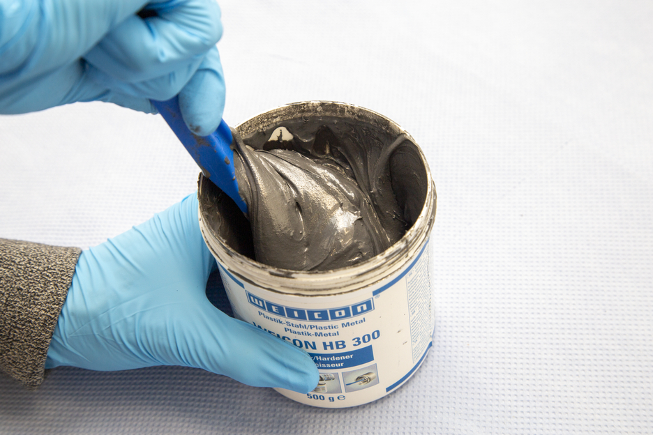 WEICON HB 300 is pasty, steel-filled and high-temperature-resistant up to +200 °C (392 °F) (up to 280 °C/536 °F for a short period of time). It is processed with a mixing ratio of 1:1. The epoxy resin system is also suitable for applications on vertical surfaces and can be used for the repair and bonding of cast and metal parts, for filling in blow holes, for repairing damage on containers, carriages and machine parts and for sealing pumps and pipes. The product can be used in mechanical and plant engineering, in equipment engineering, and in many other areas of industry.