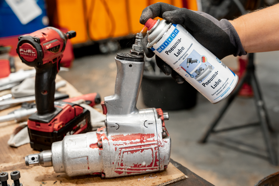 As a lubricating and corrosion protection agent, WEICON Pneuma-Lube is the universal problemsolver for all moving parts in pneumatic equipment and accessories. Its special product formula with a high content of PTFE makes it a multi-purpose product for: lubrication, corrosion protection, cleaning, water displacing and conservation. The product can not only be used in installation or maintenance of pneumatic equipment and accessories, but also on pneumatic tools in operation. Its excellent weathering resistance allows its use in other sectors as well, e.g. in the on- and offshore industry.