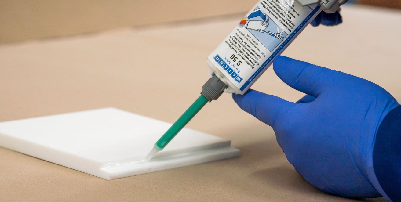 Epoxy adhesives are suitable for metal, rigid plastic, fibre composites (FRP, CFRP etc.), ceramic, glass, stone, wood, and many more. These materials are also often combined, which leads to additional requirements.