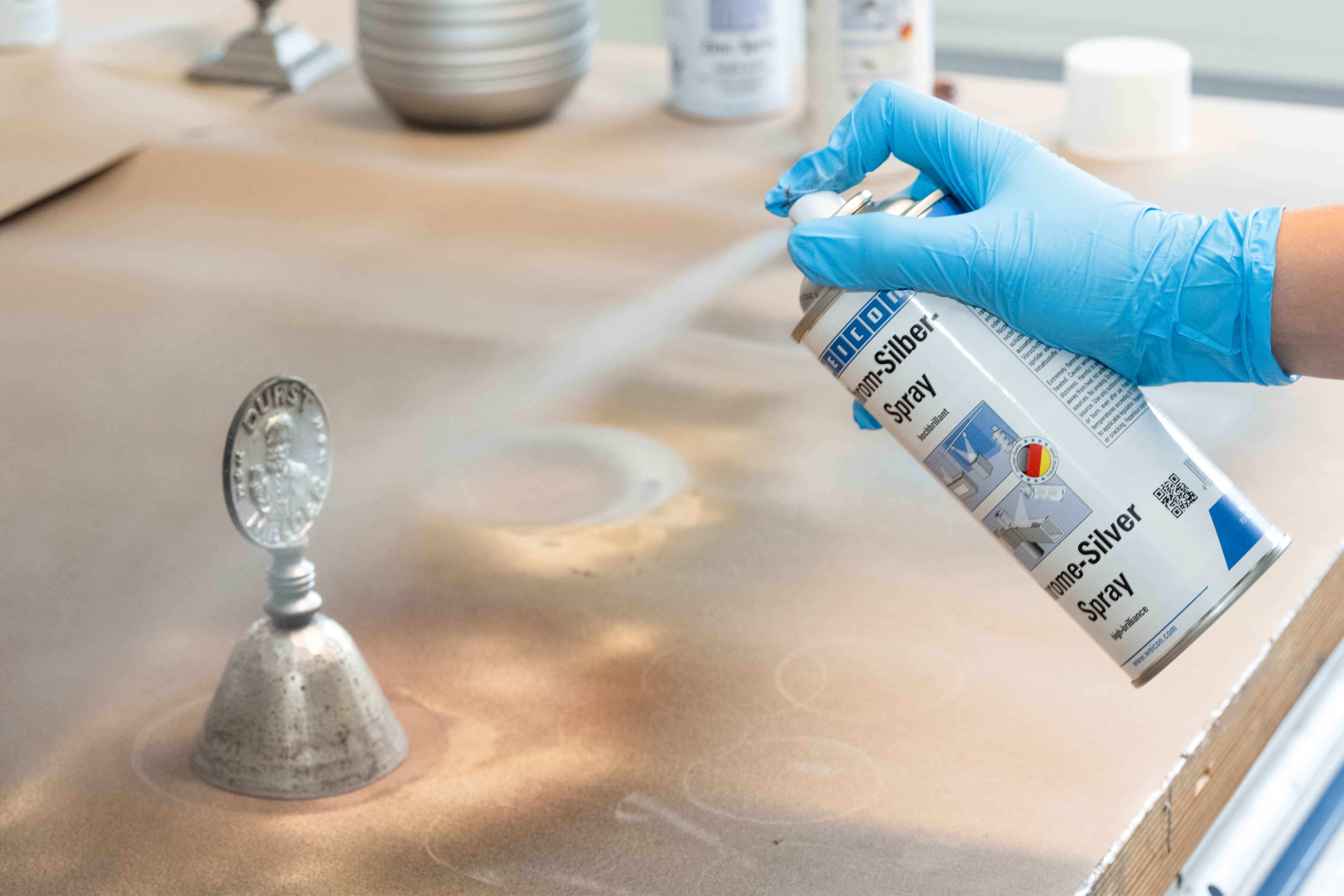 Our metal sprays are perfect for surface and corrosion protection and contain synthetic resins enriched with metal pigments. In a spray can, there is always an active ingredient and a propellant. Shaking the can sets the stirring ball in motion and mixes the metal pigments with the synthetic resin. The propellant, e.g. propane and butane, exerts pressure on the active ingredient and the two begin to mix. It is therefore important to shake the can repeatedly before use and also during prolonged use.